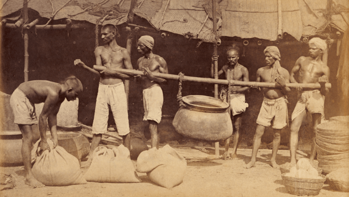 In the regulatory vacuum, grain merchants, primarily Baniyas, ran amok. In ‘Usury, Dearth and Famine in Western India’, historian David Hardiman studies the sahukar, the Baniya trader-cum-usurer of western India. The sahukars provided loans to pay taxes; for agricultural equipment, for livestock, for seed; they advanced grain in lean months. At harvest, they collected everything, with interest, directly from the threshing-floor, leaving farmers with a bare subsistence. The grain then disappeared into sahukar stockpiles and was released onto the market at prices suitable to them. The sahukars, however, could not, by custom, take the peasants’ ancestral land rights. In fact, after all the exploitation, they did attempt to keep farmers alive during times of crisis (even if only to prevent them from migrating away). They might provide a trickle of rations to rural clients during famine. In larger cities, Baniya associations even occasionally distributed cooked food — Hardiman notes examples in 1631–32, 1832–33, and 1899–90.