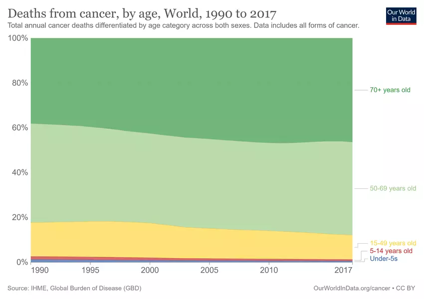 - As people live longer the risk of cancer increases, with over 70% of cancer cases occurring in people over 50.
