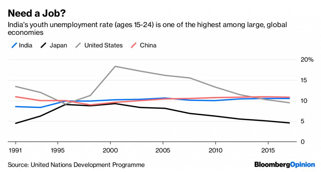 Indian politicians have vowed to create millions of new jobs a year. That hasn’t happened. Ahead of a big election, India’s accidental automation may make that promise even harder to fulfill. –Bloomberg