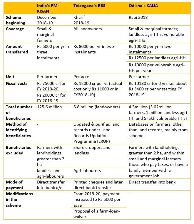 Comparing Direct Income Transfer Schemes: PM-KISAN, RBS, KALIA