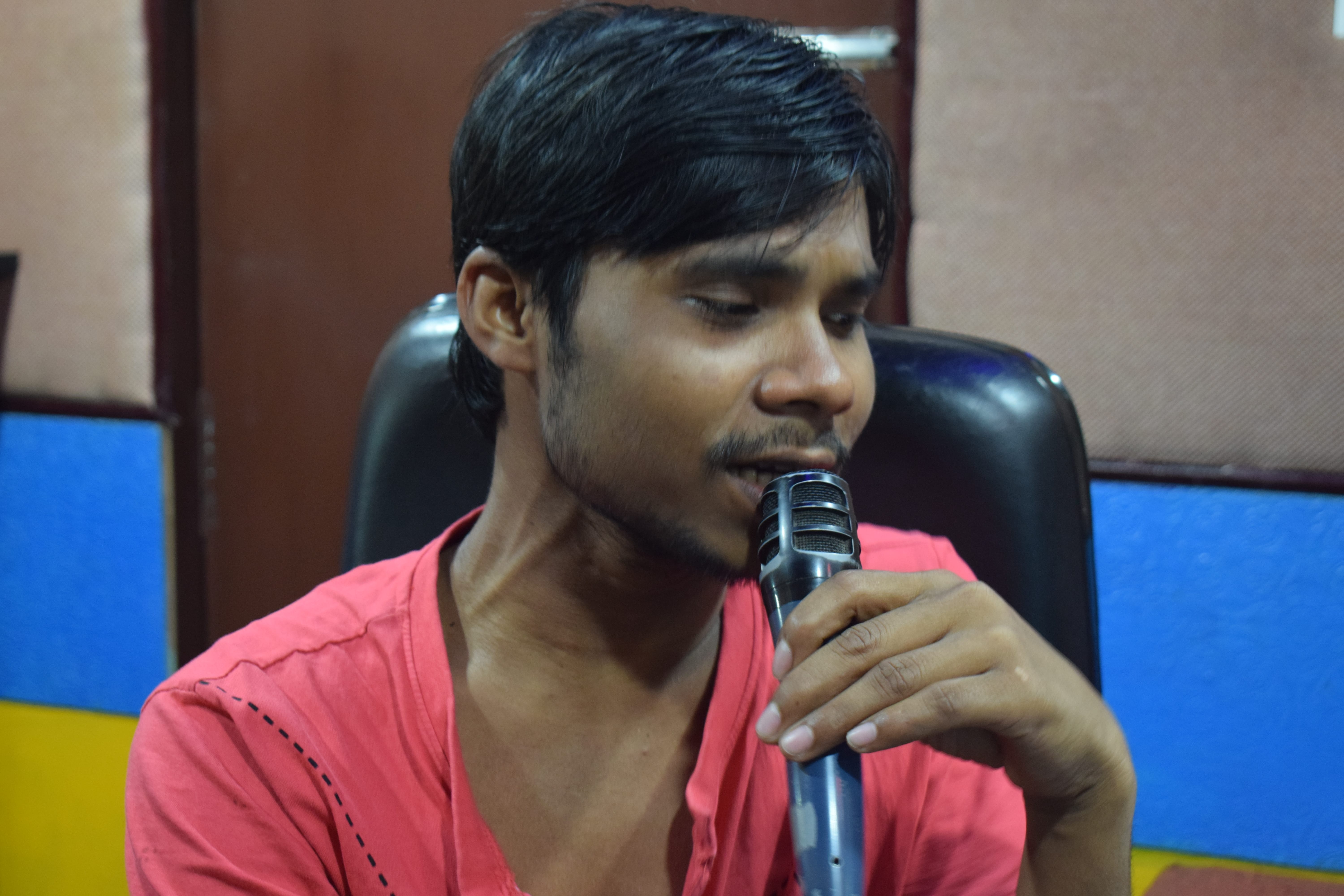 Deepak Bihari, a young man from Bihar, hums lyrics of the famous Bhojpuri song “Raat diya buta ke piya tune kya-kya kiya (What my beloved husband did at night after switching off all the lights)” by Bhojpuri star Pawan Singh. Bihari is a singer, lyricist and a music composer. “My first song Roi roi likhatani patiya ho garnered more than four million views on YouTube.” He ran away from home when he was 10 and now is a caretaker at one of the studios.