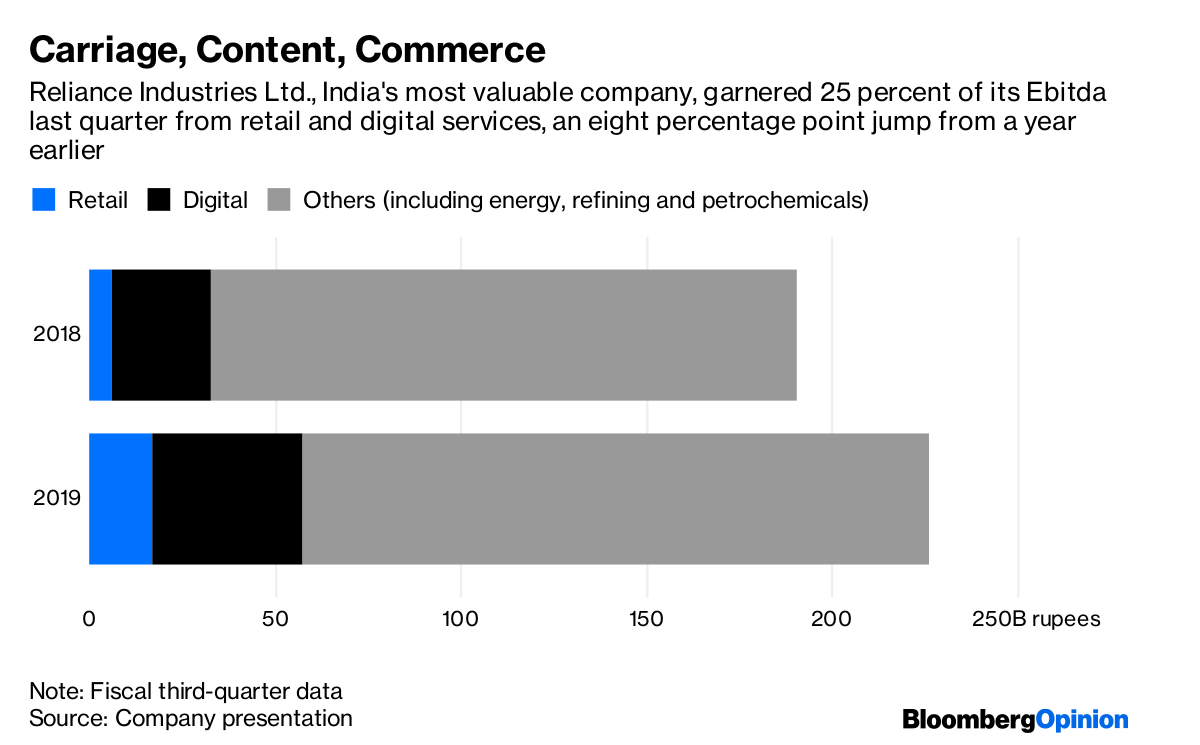 Reliance Jio’s digital investments have already exceeded $40 billion. But in India’s hyper-competitive telecom market, the average revenue it can get from users isn’t even $2 a month. One way to make a carriage- and content-centered business spew out profits is to make it a triple play by throwing commerce into the mix, and lacing it with good, old-fashioned lobbying.