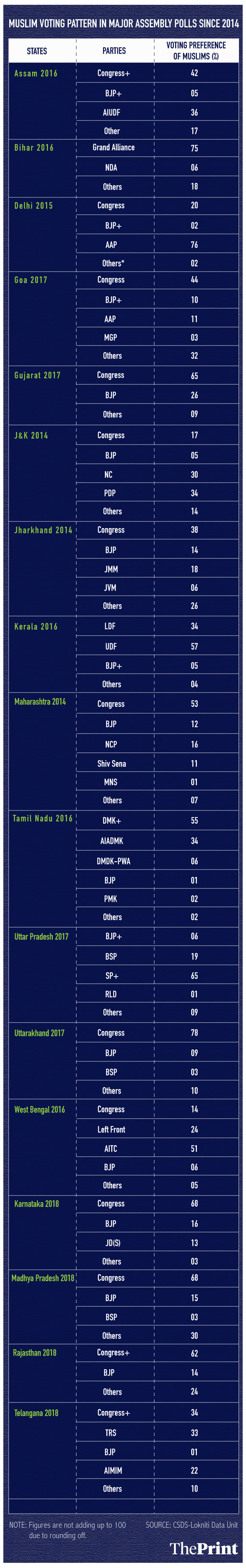 But the Muslim voting patterns in the state assembly elections conducted after Narendra Modi was elected in 2014 present a far more complex picture, including significant voting for the BJP.