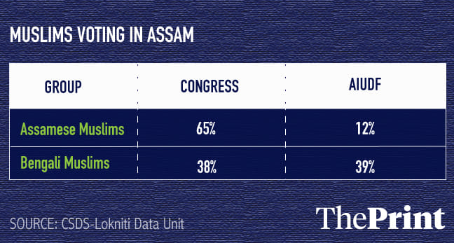 Assamese Muslims preferred the Congress, while the Bengali Muslims voted for both the Congress and the AIUDF. It shows that apart from religion, other sociological factors (in this case language and ethnicity) also play a more direct role in determining the political preferences of Muslims.