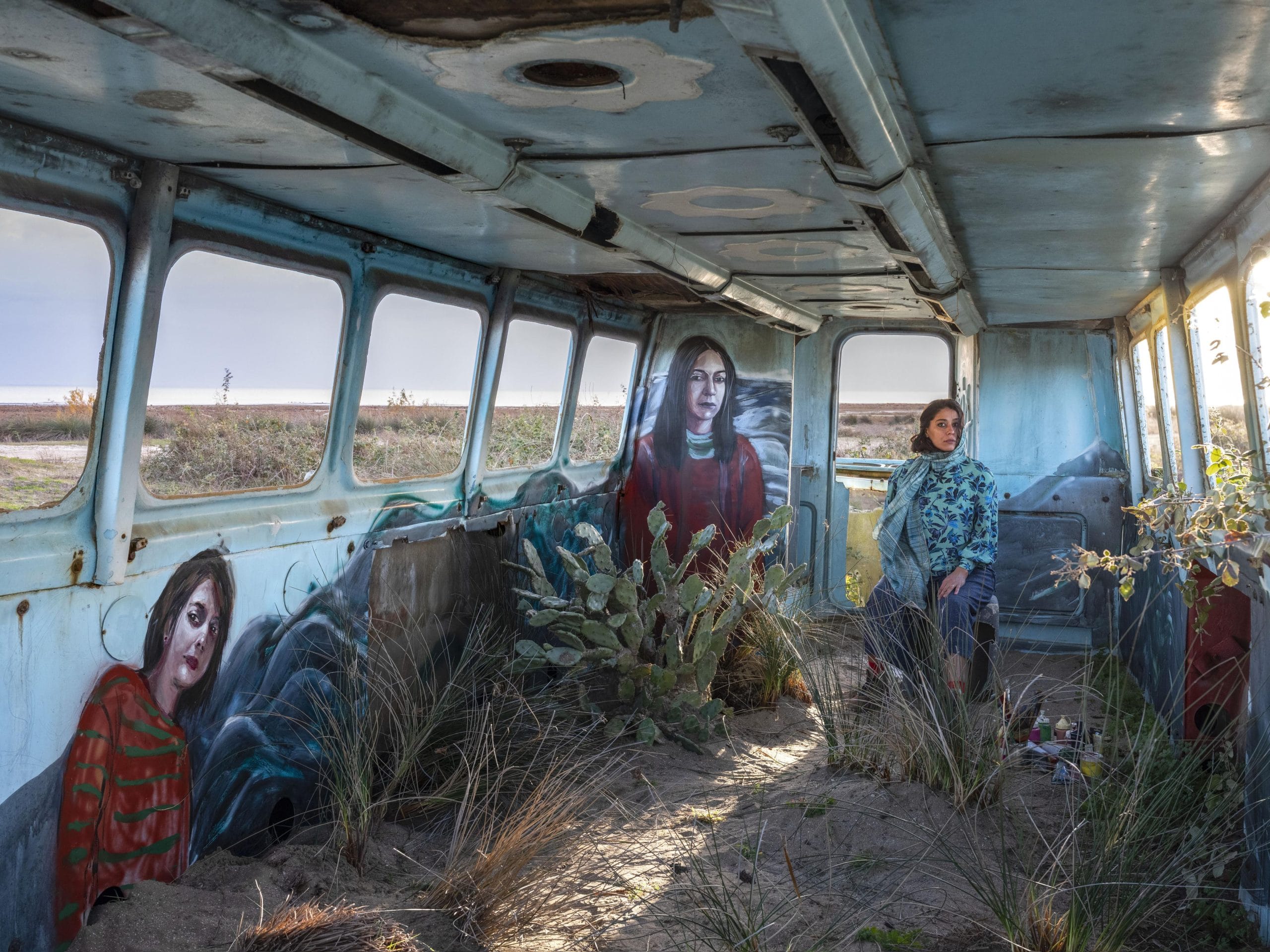 The catalyst for Firuzi’s series was the fatal crash of a Ukrainian airplane in Tehran on 8 January 2020. In a bid to make sense of this collective agony, she turned to ruins. Firuzi invited female painters to paint what they like in abandoned places. The photographs of the sites make up the collection.
