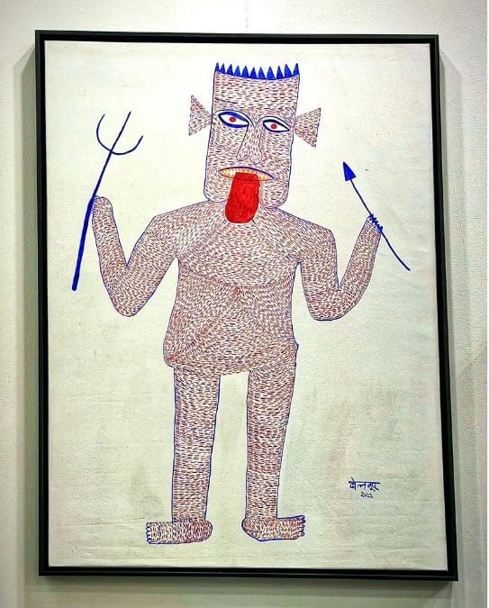 Mandavi was a tribal mural artist from Garh Bengal, Narayanpur, in the Bastar division of Chhattisgarh. He was discovered by one of J Swaminathan’s scouting teams in the early 1980s and went to Bhopal three times to participate at painting workshops in Bharat Bhavan. But he returned to his village and went back to agriculture, rarely painting. He was rediscovered in the 2020s.