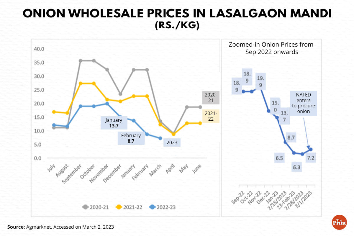 Figure 1: Onion wholesale prices in Lasalgaon Mandi (Rs./kg)| Source: Agmarknet. Accessed on March 2, 2023