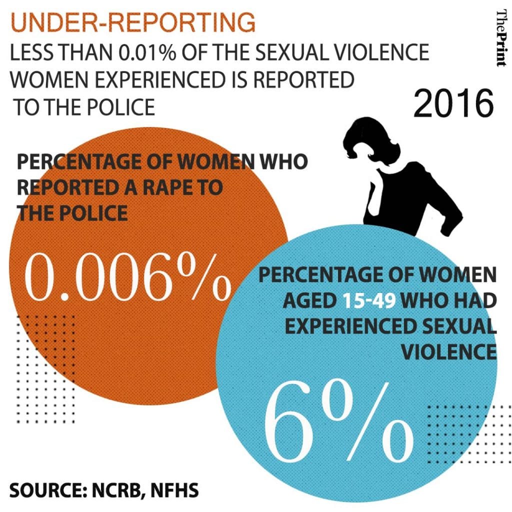 All of this, of course, is the story of reported rape. A comparison of the share of women who told the National Family Health Survey household surveyors in 2016 that they had experienced sexual violence with the number who had reported a rape to the police that same year shows that less than 0.01 per cent of the sexual violence that women experience is reported to the police.