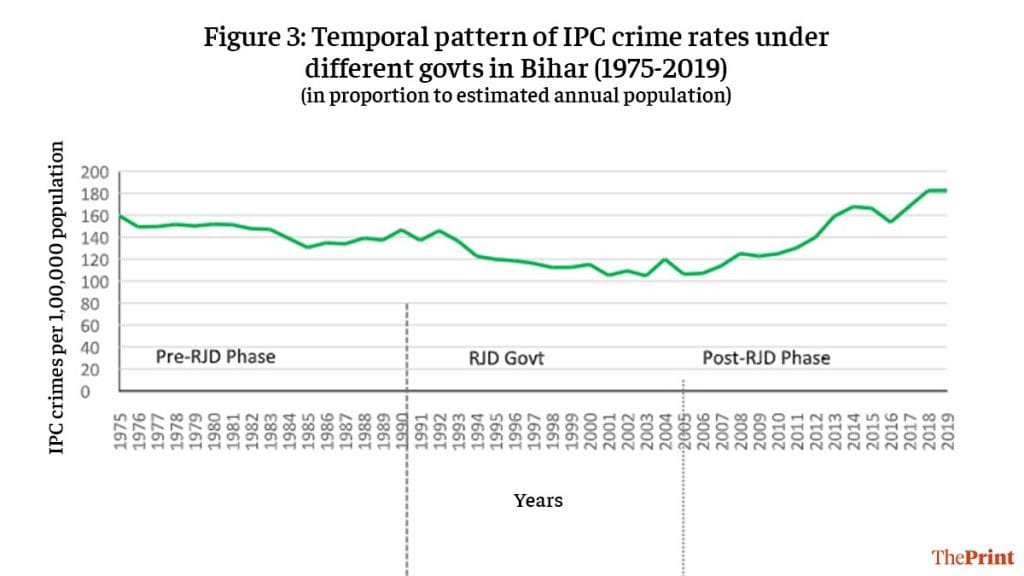 Don’t make fun of people who have suffered. I recall times when doctors would be scared to buy a maruti otherwise they will get a letter. Kidnapping of eminent people in town was no big deal. People were afraid to buy a honda bike as chances were it will be stolen or be taken away at gun point. I have seen talented people migrating out of the state for good. Look at Bhagalpur and the migration of traders to Bengaluru and Howrah. It enraging that you would cite data to think Laloo period was the same as Nitish’s period. Police would not file FIR, many issues were not reported- please remember there was no social media . Please have heart and don’t invent facts. I appreciate Print for their journalism , don’t do a republic to such a good site.. Now people drive BMW and are not worries about robbed in broad day light. Entering a jewelry store during Laloo days was like entering a high security prision..now we have the town teeming with brands like Tanishq , PC Jewelers etc. Look at property being sold and bought. In laloo days, if they got a whiff of a property transactions, you would start worrying about getting a “chitthi”.. People would not register or even paint their houses . Talk to Biharis who grew up then ..Another empirical data – Look at number of property registrations that have happened of late.. don’t cite data selectively and humiliate an entire generation that grew up terrorized…