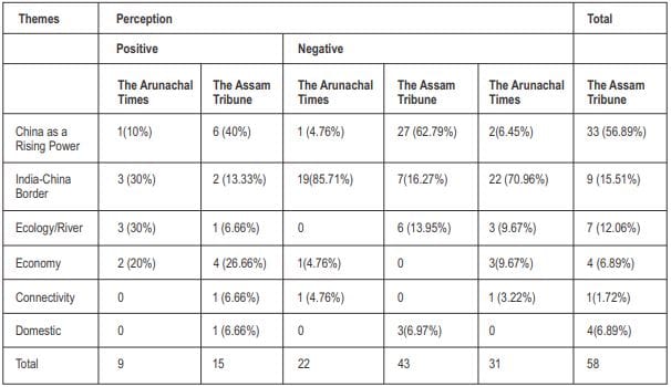 A total of 89 China-related editorial pieces were studied (The Arunachal Times– 31; The Assam Tribune- 58). The Arunachal Times had the highest number of China-related editorials in 2014 while The Assam Tribune published the most number of such editorials in 2013.