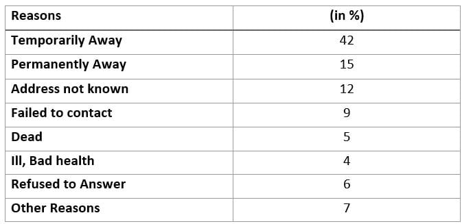 Table 1: Reasons for ‘Not interviewed’ in NES 209