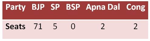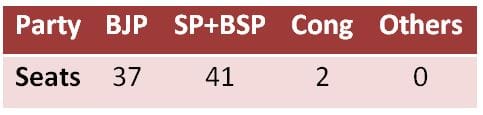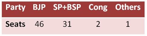 So, we can see that the simple addition of SP and BSP votes will tilt the scales and the BJP would lose nearly half its seats. SP+BSP would get more seats than the BJP despite securing fewer votes.