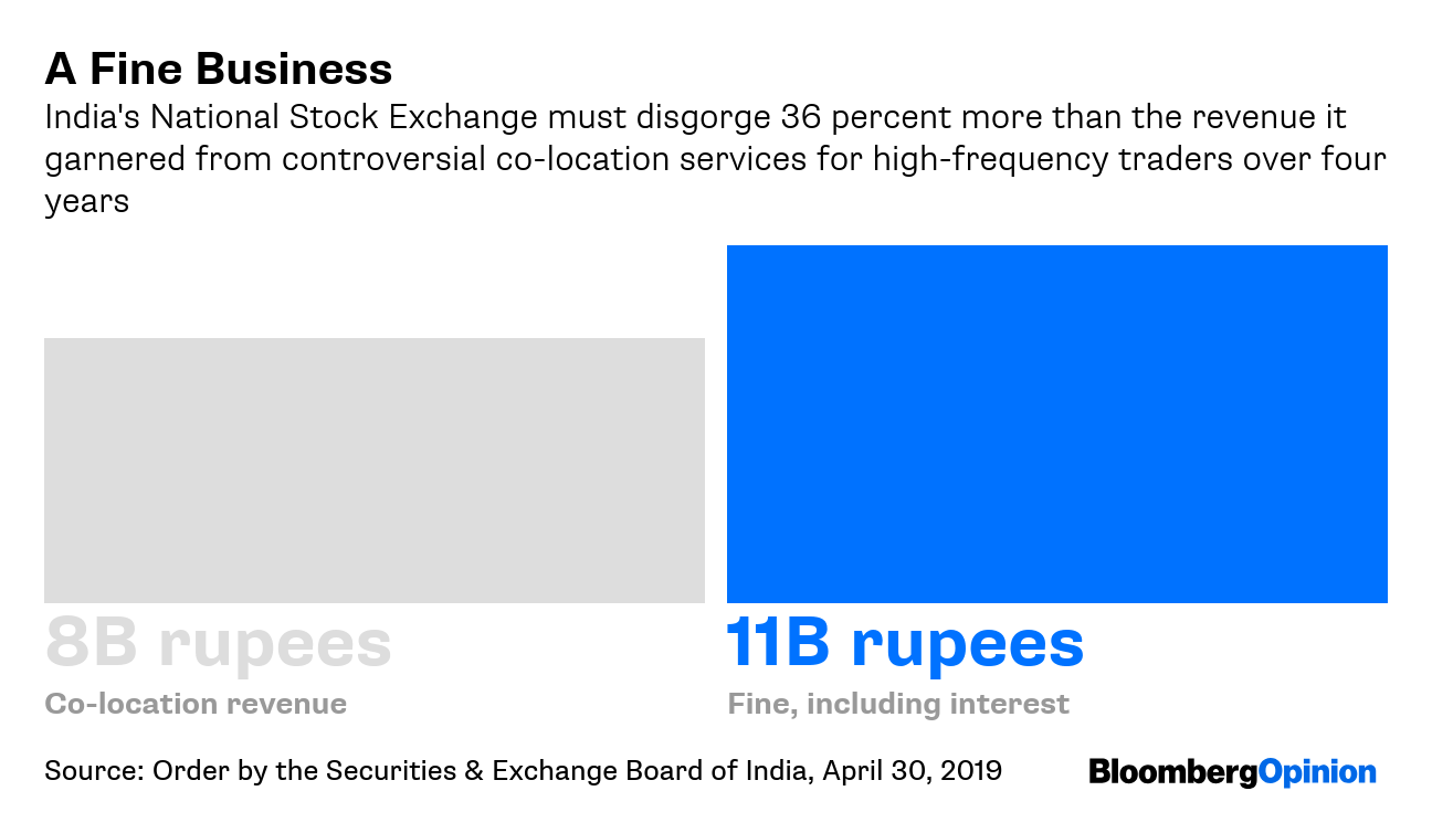 Besides, the penalty – harsh as it is – won’t have any cash-flow implications. Even as it was taking its time investigating, the regulator had asked the NSE to set aside its co-location revenue. By March 2018, the escrow account had already swelled to about 12 billion rupees. After paying the fine, Limaye will have more cash at his disposal. But since the exchange hasn’t made any provisions for the fine, it will have to take a charge, perhaps as early as the June quarter.