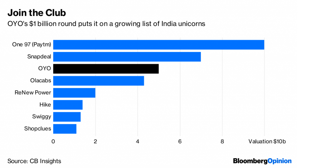 A $1 billion round from the likes of SoftBank Group Corp.’s Vision Fund, Sequioa Capital and Lightspeed Venture Partners puts OYO on the growing list of Indian unicorns. Founder Ritesh Agarwal has big plans for the startup, which already has 10,000 hotels in 160 Indian cities, as he told Saritha Rai of Bloomberg News.