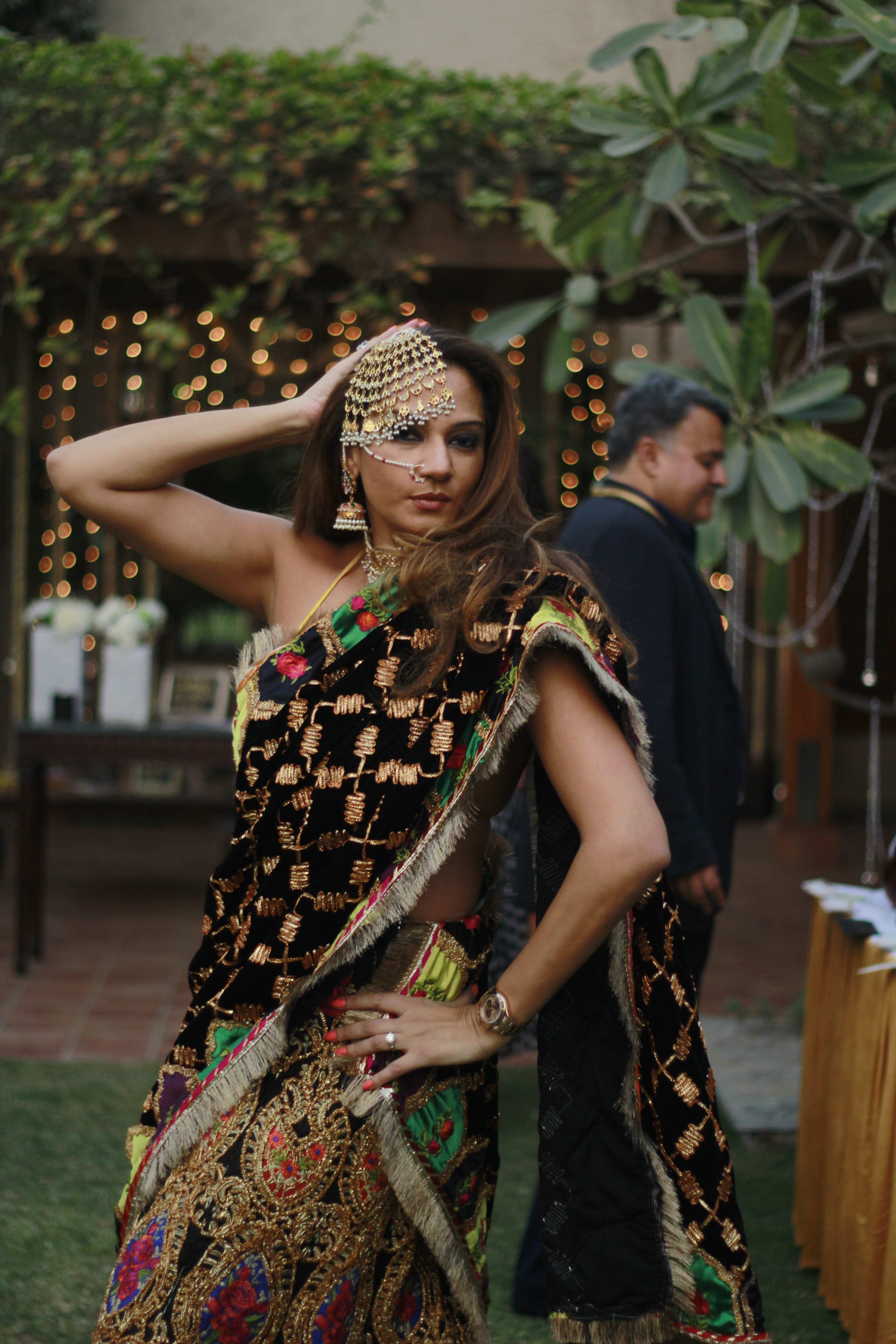 The hostess has in jest dubbed her party the ‘100 million dollar event’. The dress code for the evening was, of course, to dress ‘ostentatious’. Everyone made a huge effort for their grand entrances – blingy saris, designer lehengas and sherwanis, rich colours, plush fabrics and all the family jewellery.