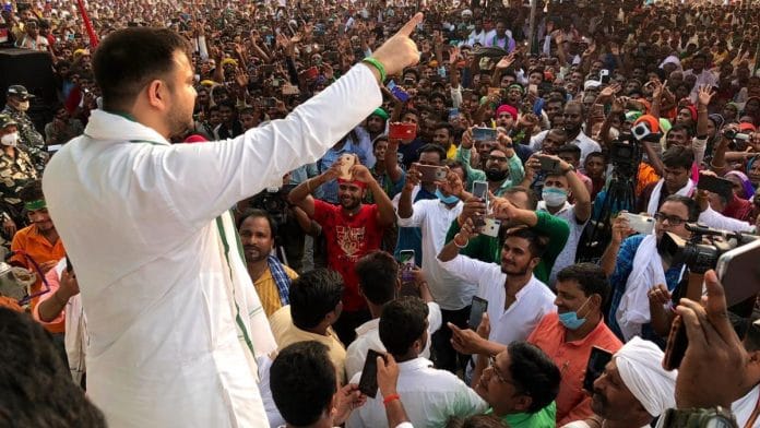 In that sense, Tejashwi hasn’t quite played the role of effective opposition to Hindutva politics, although he has done well by making jobs the central theme of his election campaign.