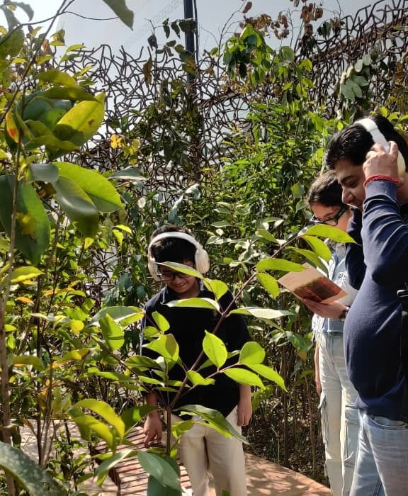 Built as a Miyawaki-inspired pocket forest, the installation gathers over 200 indigenous plants and trees inside a structure made from nearly ten tonnes of reclaimed construction material. The idea of “home” is reimagined as a living, multi-species ecosystem. Inside the foliage, were headphones offering nature’s sounds. It was tucked away in the farthest corner of the grounds. Inside the pocket, the noise of the fair softened momentarily.