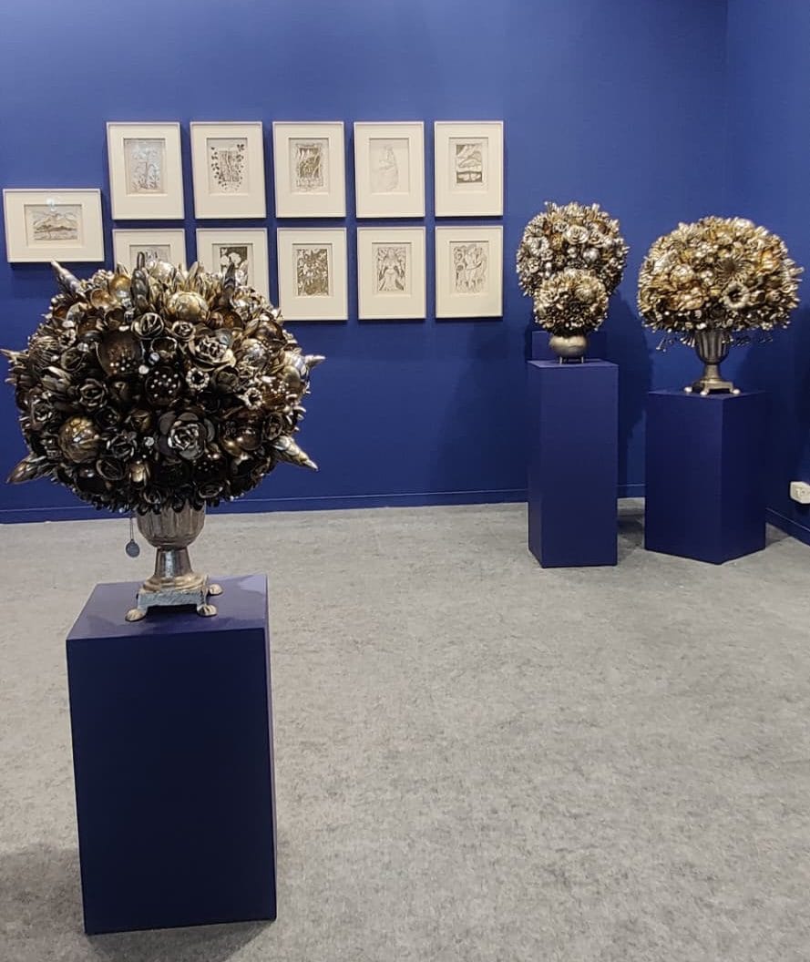 Among the five artists in this exhibit, Ann Carrington’s exuberant botanical sculptures, assembled from recycled steel cutlery, were most immediately seductive. But even here, most visitors lingered for only a minute or two. There was simply too much to see.