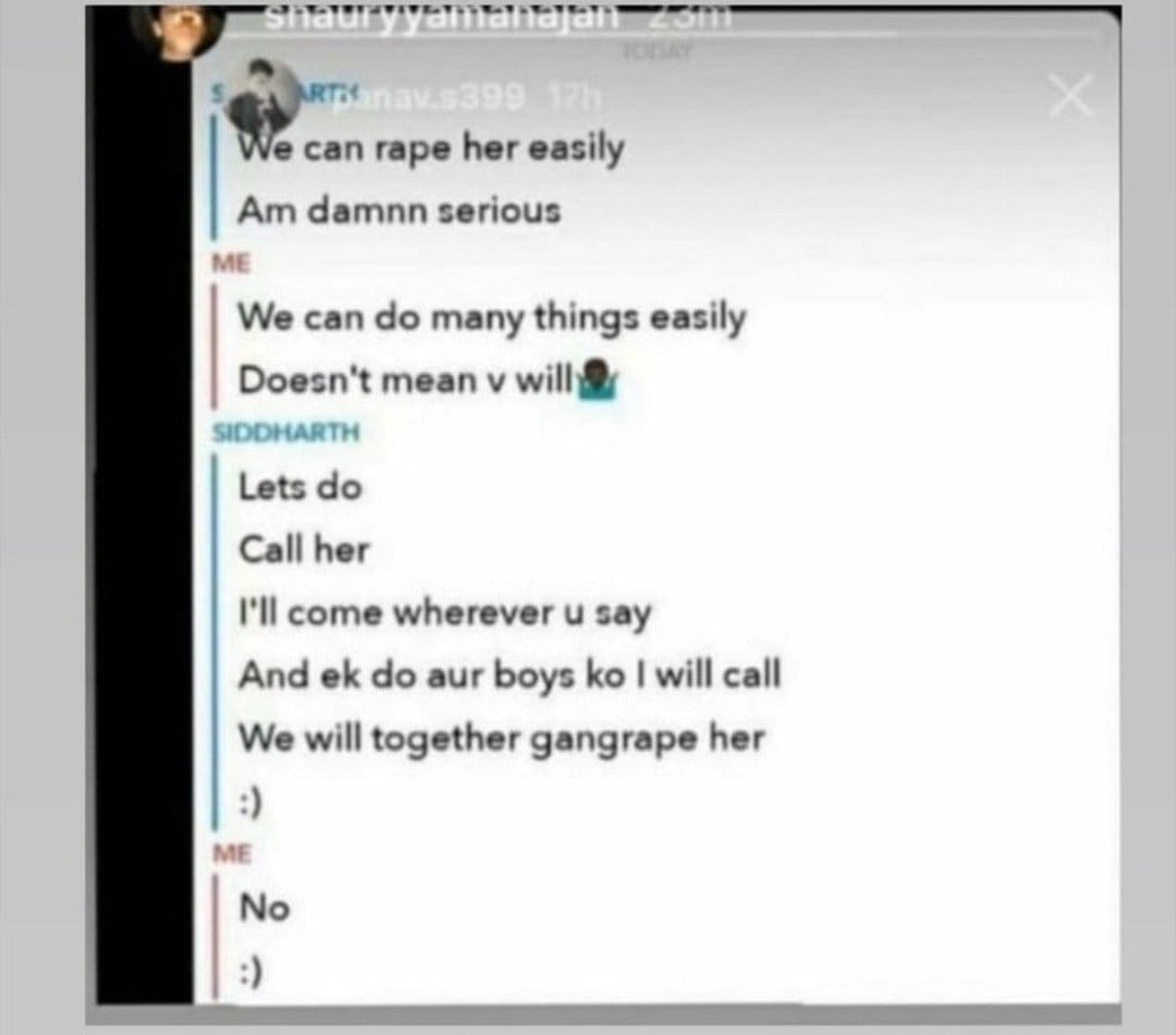 Hey psuedoliberals and hinduphobic girl. You communist mindset people want to malign the image of india and presents india as a rape culture without knowing fact that DELHI POLICE investigates that minor girl creates the fake account to malign the image of boy in that group.
