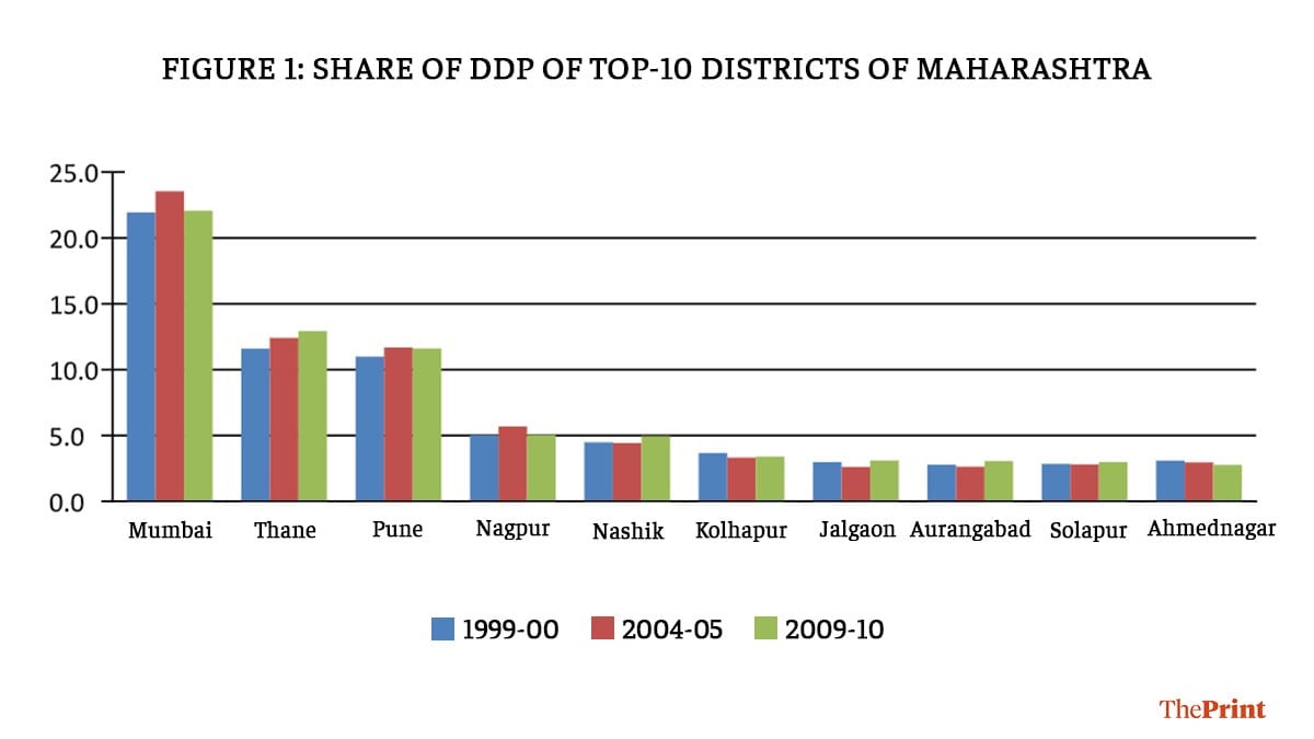 A recent article in ThePrint has explored the economy and sectoral composition of these prosperous states, focussing on the contrasting models they have followed. We intend to bring in a geographical dimension to it. Prosperous states like Maharashtra and Karnataka perform well in terms of overall state-level gross domestic product (GSDP); the growth, however, may not be evenly spread across the state.