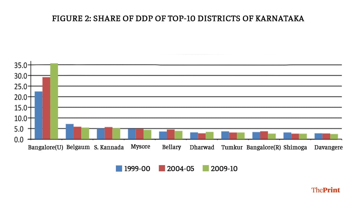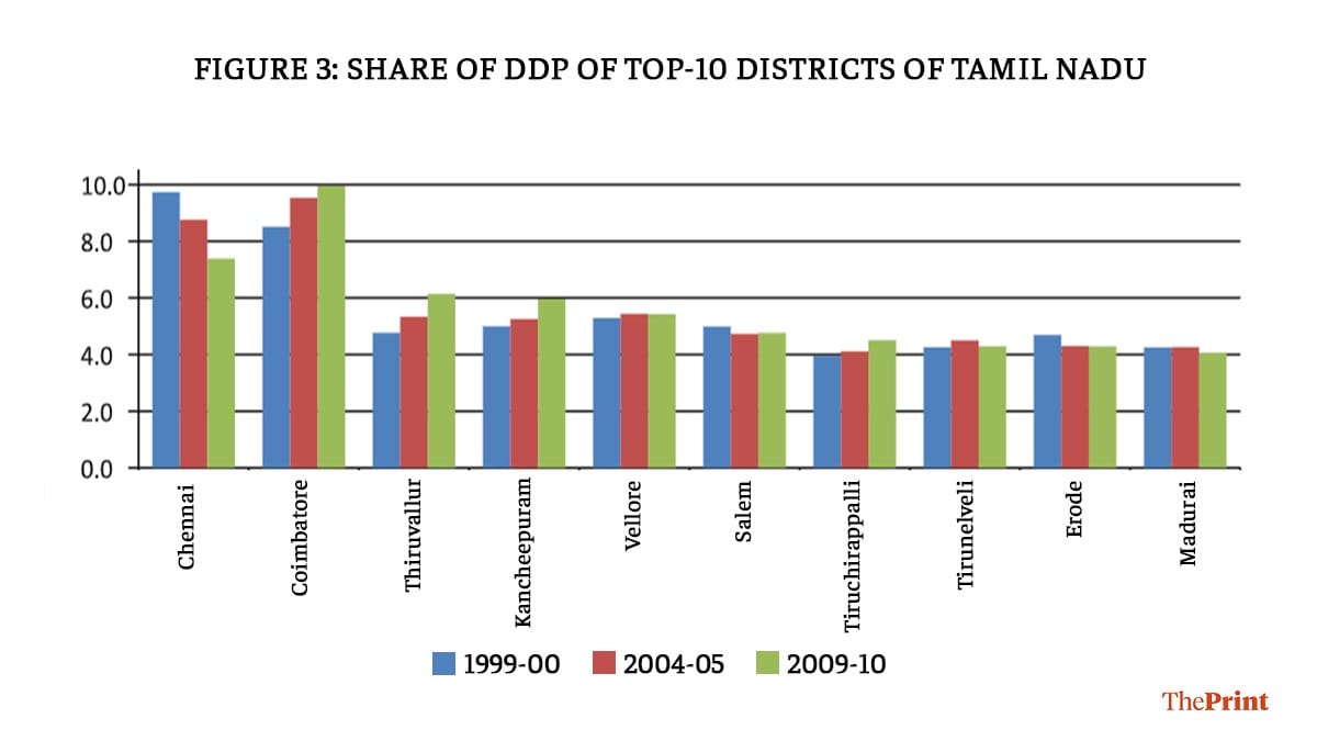 To capture this, we looked at the share of a district’s income in the state’s economy to bring out inter-district disparity for three of the most prosperous Indian states: Maharashtra, Karnataka, and Tamil Nadu. The new post-pandemic policy thinking should address the important point of regional disparity that data reveals.