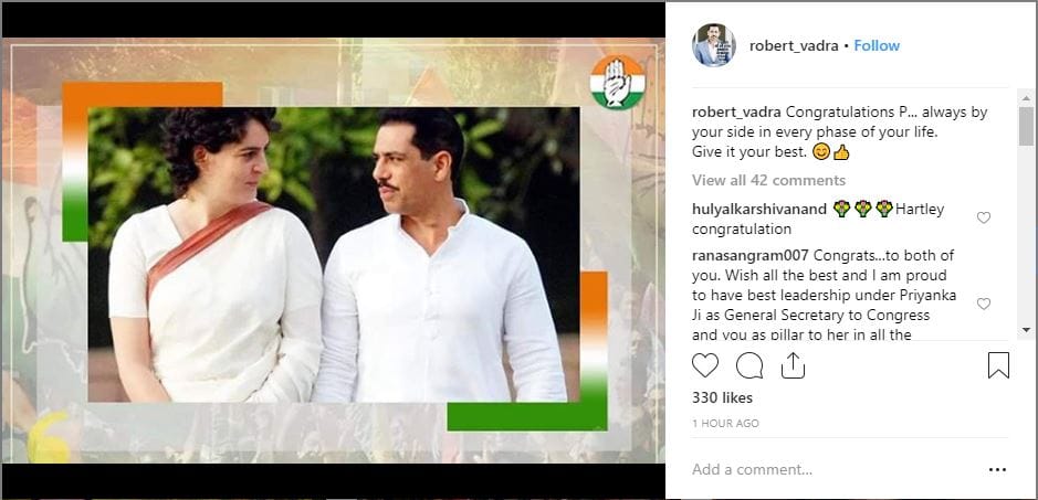 But then, the purdah obstinately stayed. It was said Sonia Gandhi didn’t want her daughter to be in public life for a variety of reasons. Okay. We get it. Protective mom. So, what changed? Could it be the Robert Vadra factor? Priyanka’s (body) builder husband Robert Vadra is in a bit of a spot, you know – criminal charges and such. But who isn’t in a spot these days? Apart from Amit Shah, that is? It was suggested that Vadra didn’t want the missus to get into the cess pool of politics and mess up their carefully nurtured family life. Now even he has changed his tune and has wished ‘P’ very warmly on an Instagram post ( “….always by your side in every phase of your life. Give it your best.”). Please note: no heart emojis. Only a thumbs up with a smiley. Significant? Ummm… we pounce on every little scrap we get, okay??