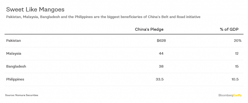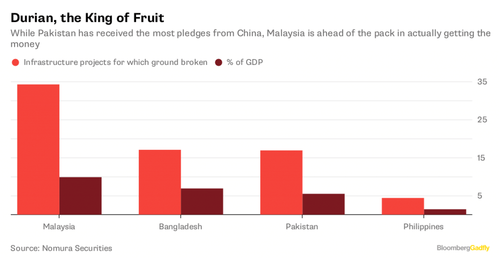 Even though China has pledged the largest sum to Pakistan, Malaysia has quietly raced ahead of the pack in securing Chinese money, with $34 billion of China-backed infrastructure projects started. Pakistan has broken ground on projects aggregating only half that amount, according to Nomura Securities estimates.
