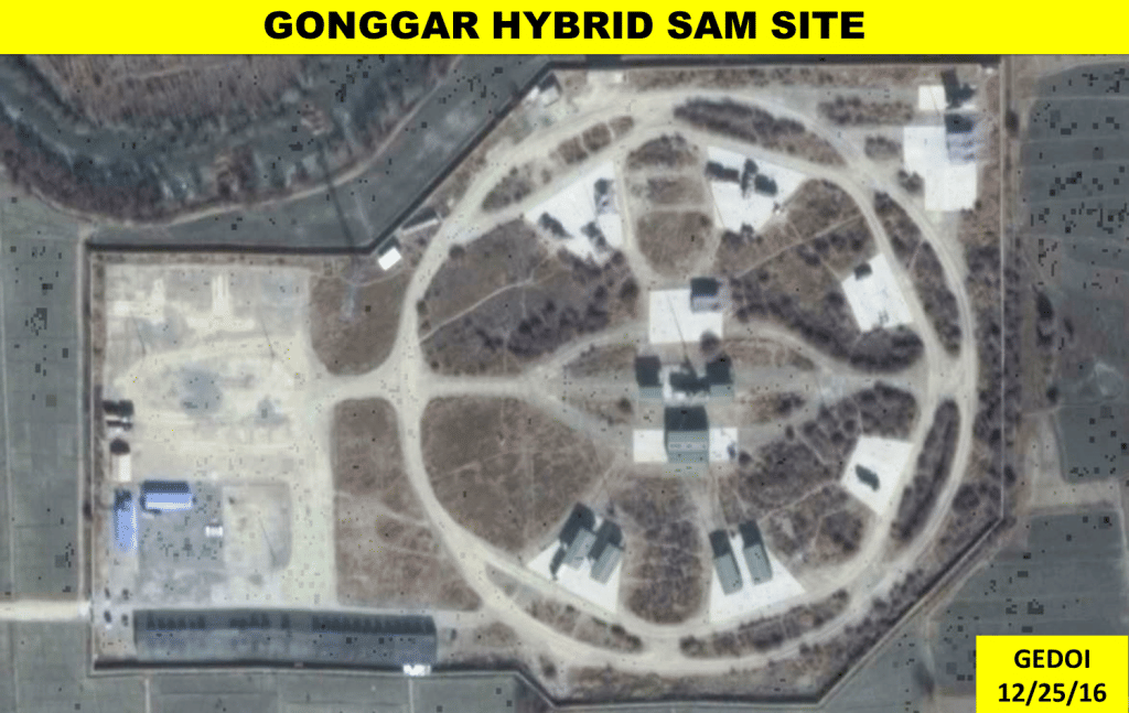Till now, only two surface-to-air missile locations have been identified in Tibet Autonomous Region. The first is located east of Gonggar airfield , and the second one is located north West corner of Shigatse airfield. The Gonggar location had HQ-2 battery deployed earlier, which was upgraded to HQ-12 recently. The Shigatse location is hybrid site prepared for S-300P but had HQ-2 deployed in between August 2010 and March 2011. It has remained empty since then.