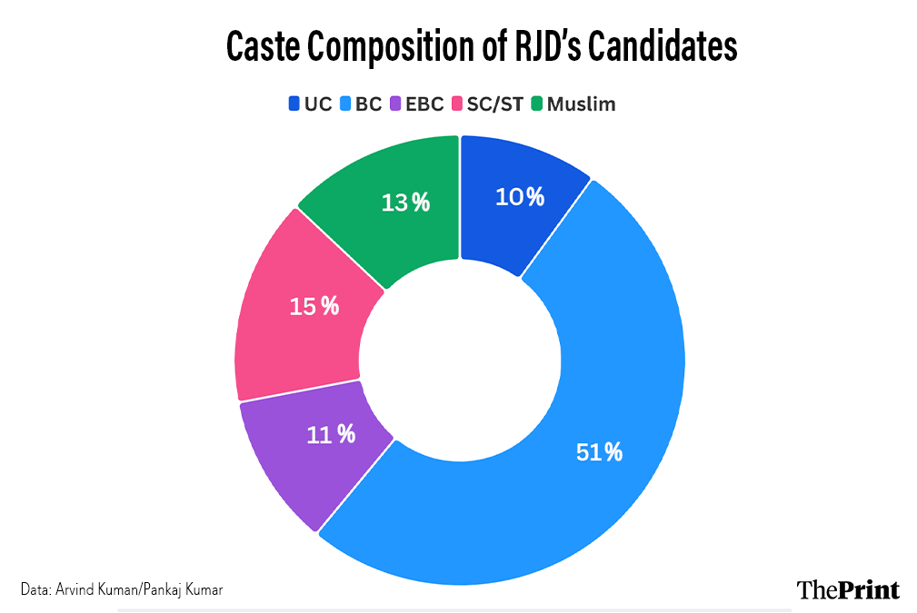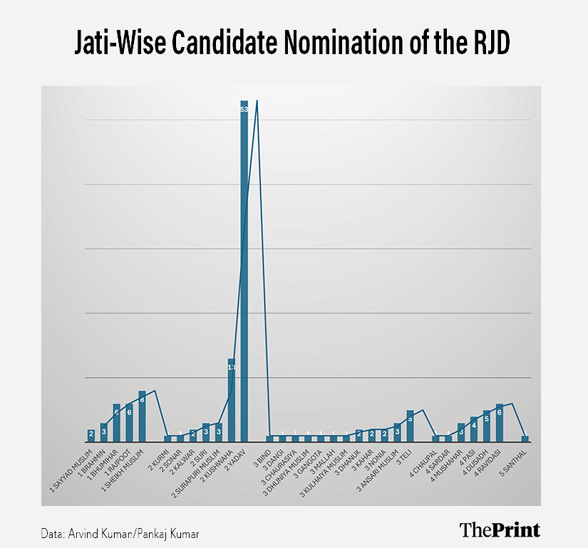 The caste–wise ticket distribution strategy of the RJD shows a lack of radical departure from the previous election. The party has again nominated its highest number of candidates from the Yadav community. The opposition parties might use this factor to promote mobilisation against Yadavs among EBCs. In the last few months, the party has made a few attempts to mobilise EBCs, but it has not resulted in candidate nomination.