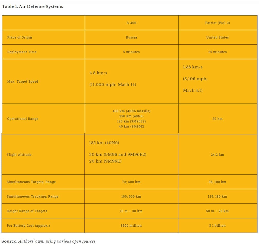 From the Indian Air Force perspective, there is no alternative system capable of serving its long-range air defence requirements, from the standpoint of either capability or cost. The ability of the S-400 to constrain the adversary’s air operations even within their own airspace, is unmatched by typical Western systems offered up as analogues. While the S-400 is optimised primarily for long-range prosecution of high-value aircraft targets with a secondary missile defence capability, Western systems like the MIM-104 Patriot are primarily oriented toward missile defence with less focus on the pure anti-aircraft role. The S-400 compares favourably on the cost front as well, with typical configurations costing around half of their western equivalents—it is an important consideration as the Indian Air Force struggles to spread limited modernisation funding across a multitude of operational imperatives, including air defence, manned tactical aircraft, force multipliers, and utility aircraft.