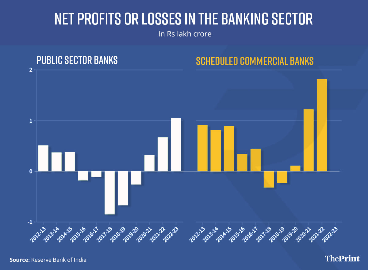 As the NPAs started to rise, banking profitability began to fall. Public sector banks fell into losses in 2015-16, and were soon followed by the sector as a whole by 2017-18. The public sector banks remained in losses for five years, before they emerged into profitability in 2020-21, as the balance sheet clean up took effect. Since then, profits have touched Rs 1.05 lakh crore in 2022-23, a 57 per cent increase from the previous year.