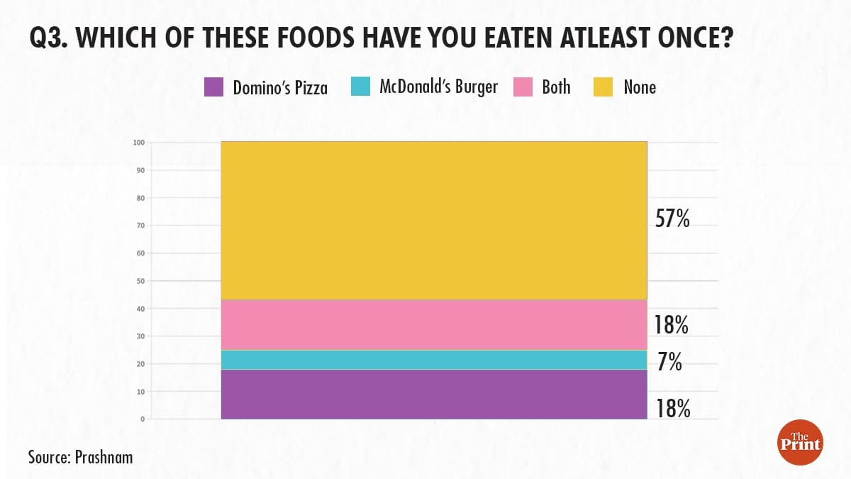 Among those surveyed, 43 per cent said they had either eaten a Domino’s pizza or a McDonald’s burger, or both. This is not to be compared with the 53 per cent awareness of Zomato since being aware is quite different from having used the services. The comparison between quick service restaurants and a food delivery app such as Zomato should strictly be limited to using Zomato and eating food.