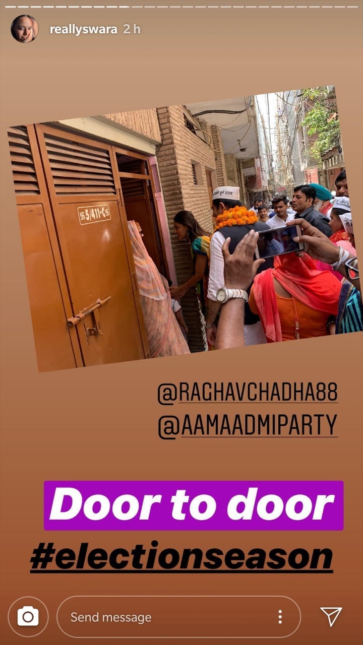 With the uncanny ability to turn heads, which was perhaps cultivated as resistance to being typecast as ‘just another Bollywood actress,’ Swara Bhasker’s cameo appearances for a string of Lok Sabha candidates is an interesting turn of events. This #electionseason, Bhasker has descended from her causeratti chopper to singlehandedly battle the Goliath of BJP ‘door to door’ with @RaghavChadha88 and @aamaadmiparty, as her Instagram stories will tell you.