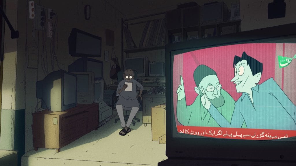 I-Fatwa makes its presence felt as Jugnu walks to school, swiping on his device, in a seemingly middle-class neighborhood. The film’s animation, led by Haseeb Rehman, is remarkable. As Mazhar told me, the team “created a visual vocabulary that truly feels familiar to a Pakistani audience—something that we can proudly say is not borrowed, something that is ours at its very heart.”