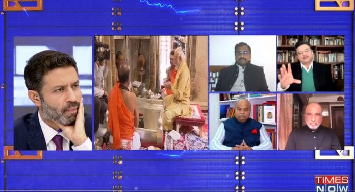 And so it went on, hour after hour, from morning to evening and then into the night. In the background, you could hear chants, bhajans, the sound of the faithful. “Modi has highlighted Hindu identity,” observed the anchor on NDTV 24×7.
