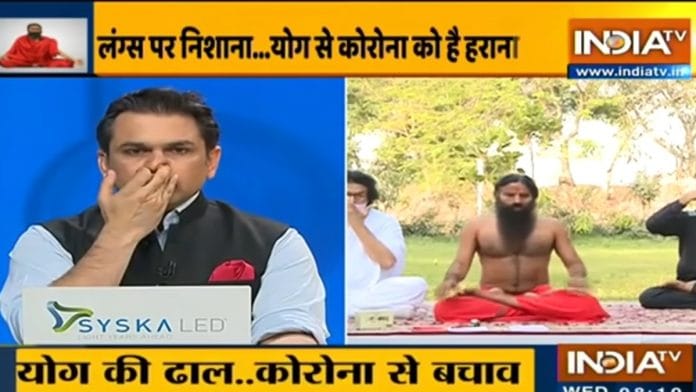 In a debate on Aaj Tak Monday, after his preposterous claims on the number of doctors who have died due to the pandemic or vaccinations as well as an attack on the science of allopathy, Ramdev, loftily, advised the practice of ‘anulom vilom’ immediately after a heart attack. An incensed Dr Rajan Sharma, formerly with the Indian Medical Association (IMA), shouted back, “A patient who’s had a heart attack can’t breathe—how will he do anulom vilom?”