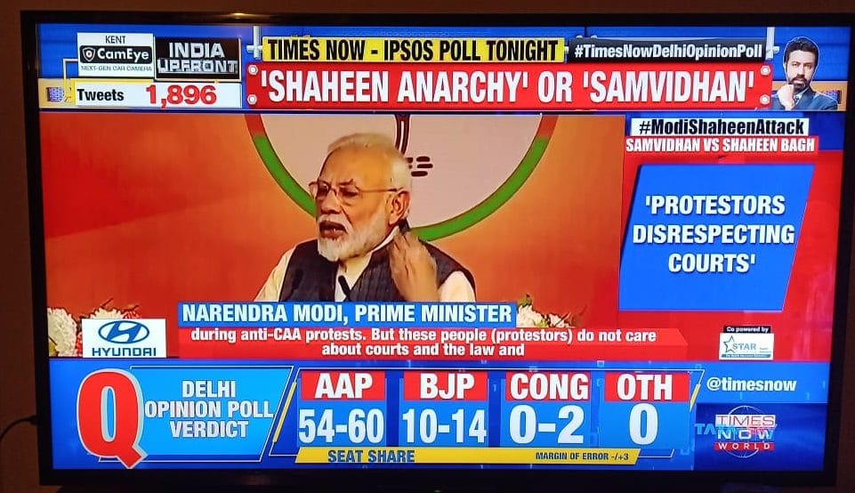No one knows who will really benefit from Shaheen Bagh in the polls, but Times Now- IPSOS Monday night poll suggested AAP “may not be out of the woods yet” and then telecast its prediction: AAP – 54-60, BJP – 10-14, Congress – 2. Compare this with earlier polls at the beginning of the campaign and you will see an increase of at least 10 seats in favour of the BJP.