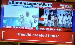 By noon, a “Mahatma Legacy War” (CNN News18) had broken out as the BJP and the Congress played politics, dutifully amplified out of all proportion by the news channels, in large bleeding headlines.