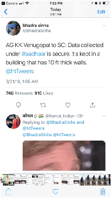 As Aaron Bady notes in his seminal and prescient essay, ‘World Without Walls’, we now live in a world in which privacy can no longer be thought of as something that was naturally protected by material barriers or distance. A post-9/11 security environment, combined with the reach of the internet, and sophisticated tools like predictive policing, have turned this notion of privacy inside out, and regulatory mechanisms either at the national or global level remain grossly inadequate for dealing with the challenges posed by this new state of affairs. Curiously and oddly, India’s attorney general, K.K. Venugopal, has used precisely the obsolete definition of privacy to defend the security of Aadhaar-related data in front of the Indian Supreme Court.