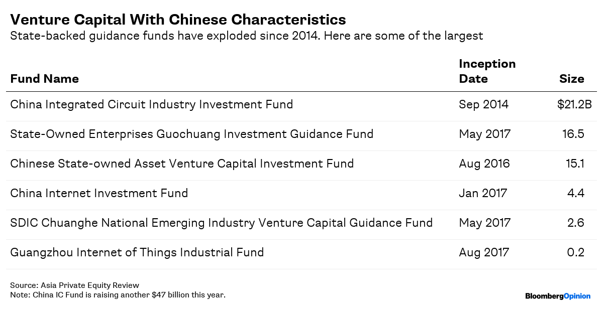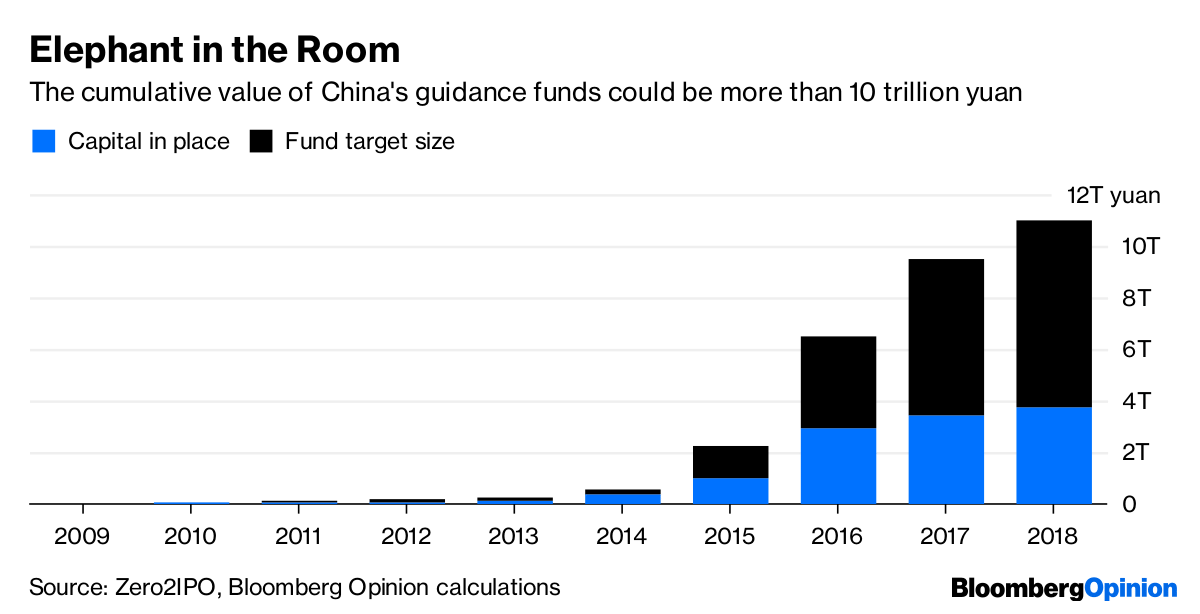 For years, China relied on cash subsidies to encourage development of key industries. But since 2014, subsidies have been giving way to so-called “guidance funds”. As of the first half, various levels of the government had established 1,171 guidance funds, aiming to raise and deploy a staggering 5.9 trillion yuan ($856 billion) according to China Venture. Other estimates are even higher: Consultancy Zero2IPO puts the figure at more than 11 trillion yuan.