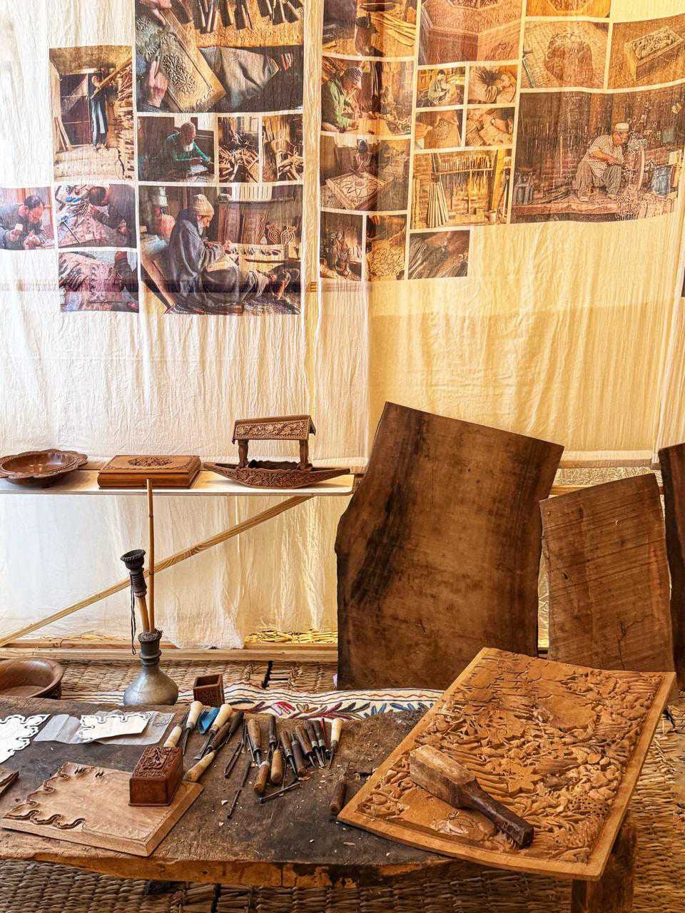 The installation brings together sketches, prototypes, and artefacts developed through dialogue and shared making, emphasising the relationship between hand, tool, and material. By situating craft within daily rhythms of labour and life, the project highlights the resilience and adaptability of Kashmiri knowledge systems. Visitors are invited to encounter craft not as nostalgia, but as a living cultural legacy shaped by patience, skill, and intergenerational care.