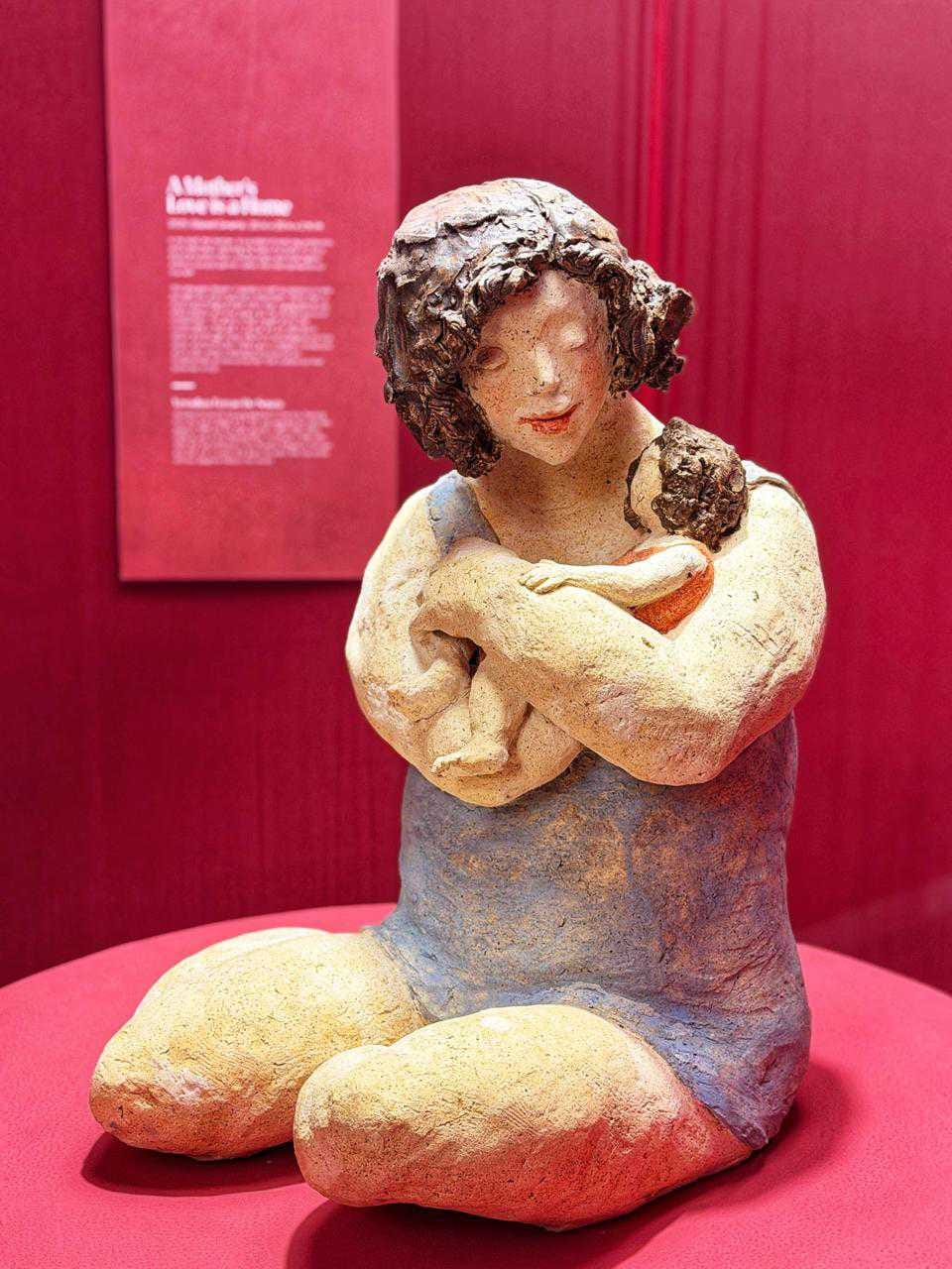 A Mother’s Love Is a Home is a sculptural reflection on care, selfhood, and belonging by Goan ceramic artist Verodina de Sousa. In this work, the figure of the woman becomes a symbol of nurturing, protection, and emotional shelter — not as a physical structure, but as the living heart of a home. The presence of the child is rendered not as a separate being, but as a metaphor for the true self, held and sustained through love and warmth.