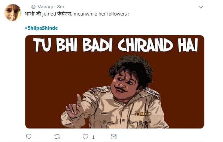 More recently, television actor Shilpa Shinde, best known for her role in Bhabiji Ghar Par Hain!, was trolled after she joined the Congress in February.