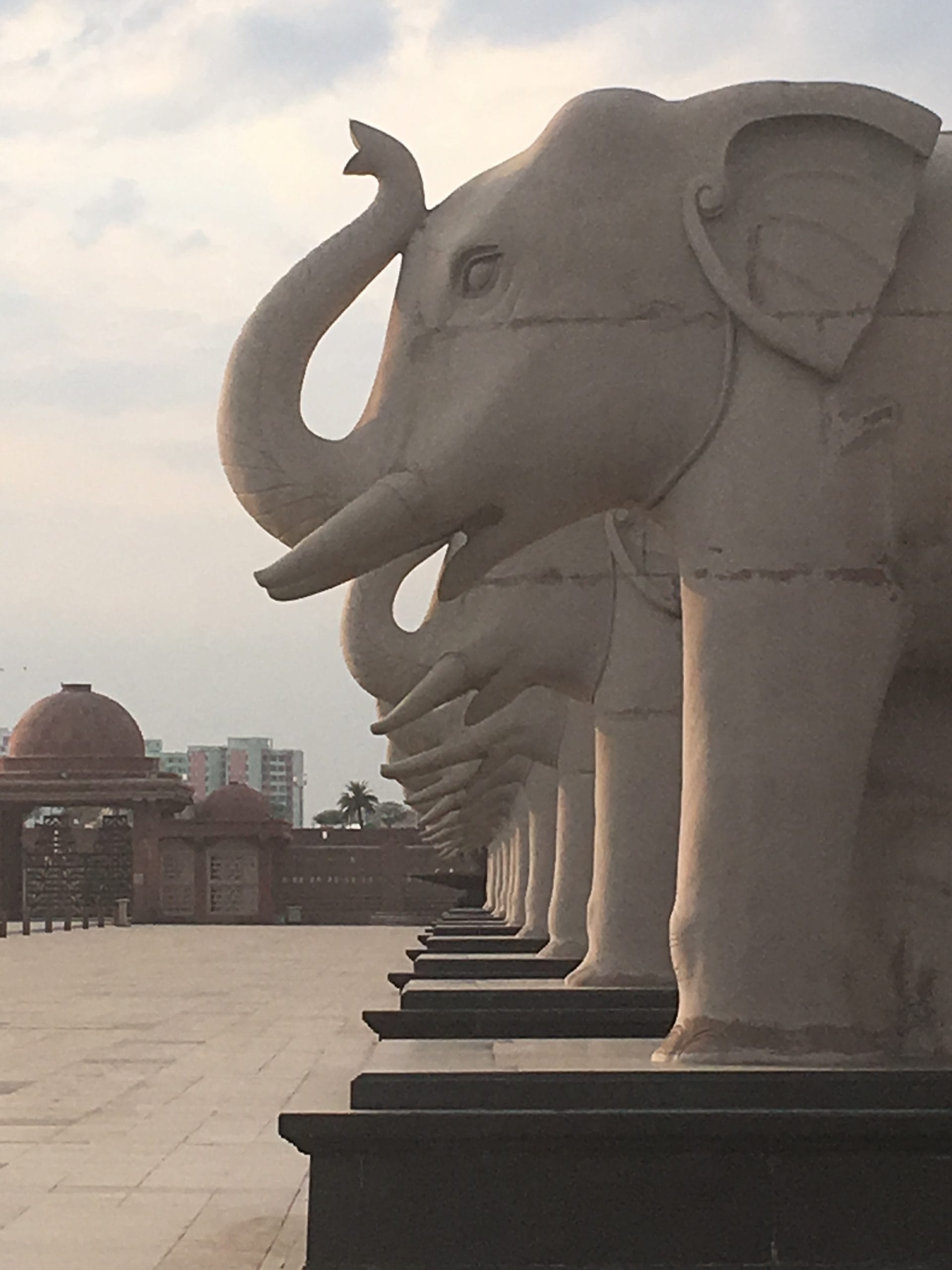 The complex is a feat of monumentalism, spread over a hundred acres in the heart of the capital city of India’s most populous state, Uttar Pradesh. Made in marble and a sandstone reminiscent of great seats of power – such as Delhi’s South Block or the Red Fort – the park is composed of vast open spaces dotted with bronze fountains, Ashokan columns, urns, friezes and stupa-like edifices. An alley of 124 monumental elephants, evoking the avenues of ram-headed sphinxes in Egypt’s Karnak and Luxor, leads to a massive inclined plane that is flanked by two tall statues of Mayawati, the former Uttar Pradesh chief minister and head of Bahujan Samaj Party (BSP), and her mentor Kanshi Ram, both holding sheaves of wheat.