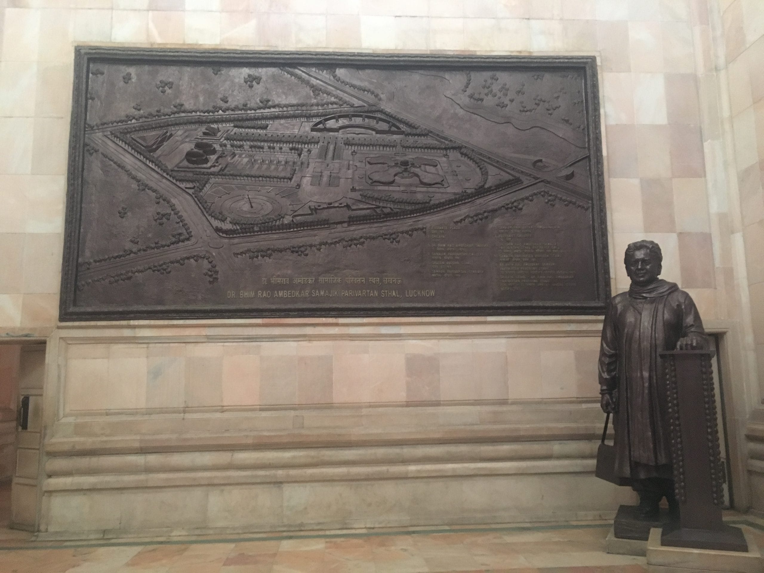 Ambedkar’s heroic life is connected to the present and to the patron of this vast enterprise, Mayawati, in a composition in which the two stand facing each other. Mayawati saw her own achievement as the first Dalit chief minister of Uttar Pradesh as the rightful culmination of Ambedkar’s struggle for social justice. It was their shared struggle and success that she sought to commemorate through the vast memorial complex.