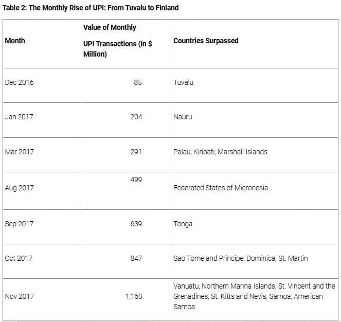 Table 2: The Monthly Rise of UPI: From Tuvalu to Finland