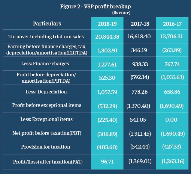 VSP was debt-free in 2011-12, that is before it started its expansion. Today, burgeoning interest payments are eating into its earnings (Figure 2). These payments are made to pay off debts that the VSP took to fund its expansion plan to become the largest single-location plant by 2032. With the Center not providing any funds for expansion, VSP was forced to rely on a 10-year Rs 22,500 crore debt plan for this expansion.