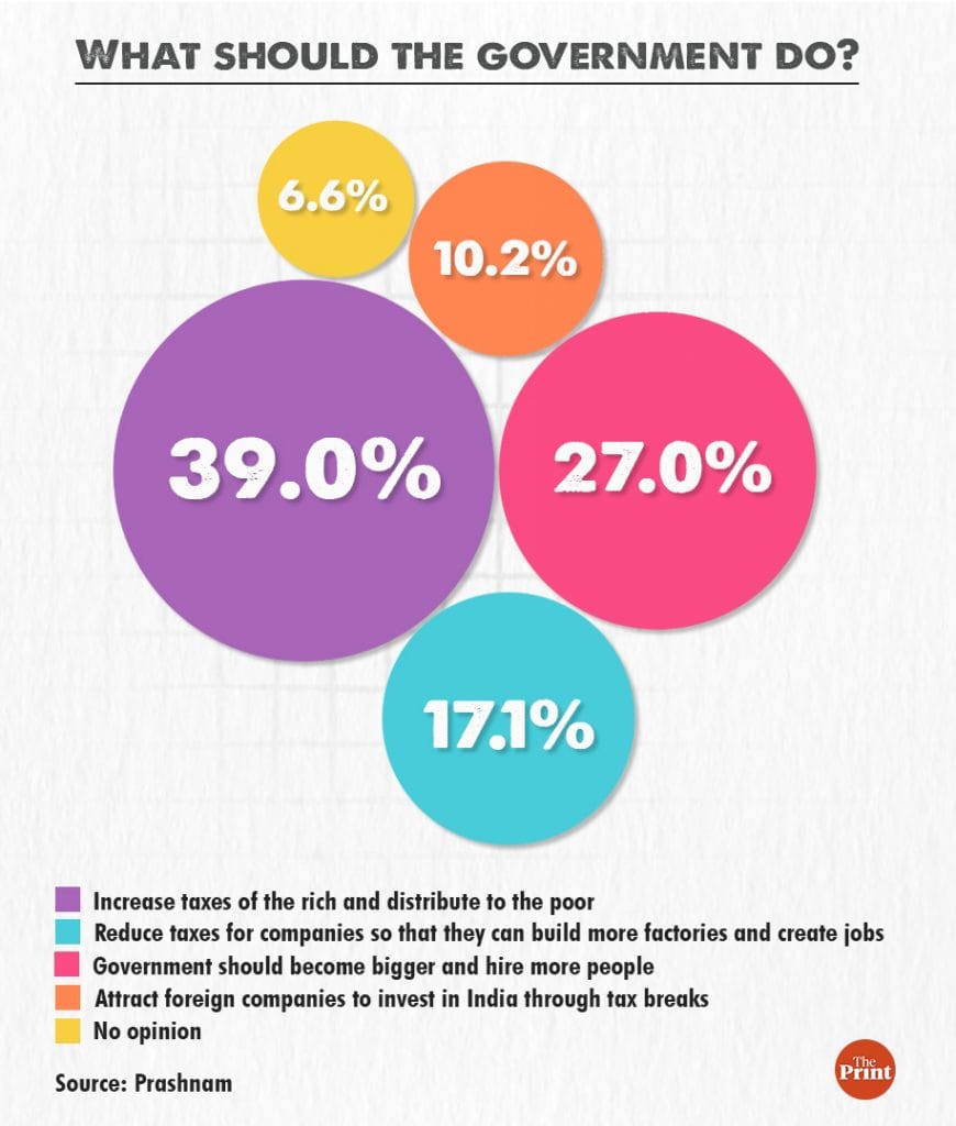 In a blow to neo-liberal economic ideologues, Indians don’t think lower taxes for corporates or foreign investors is a good idea. There is overwhelming support for taxing the rich more and using it to expand government and redistribute to the poor. This is obviously what our politics will reflect since, in a democracy, politics is merely the reflection of societal desires. It is then obvious that the disinvestment of Air India and other Public Sector Undertakings may not be a popular move among the public. This, of course, runs counter to the general media narrative for a neo-liberal economic prescription of lower taxes and smaller government, which reflects in the actions of the elite minority.
