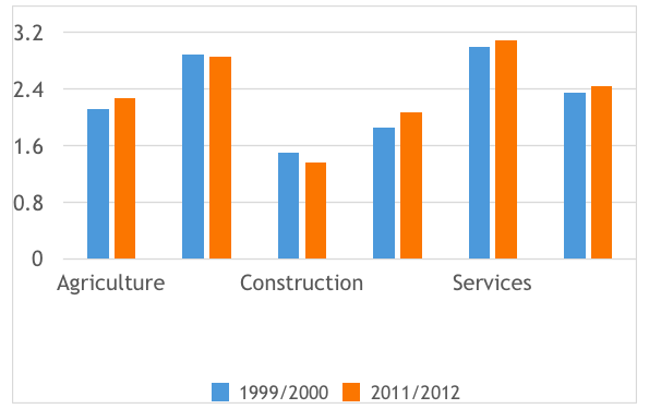 First, with annual figures and less frequent employment data for households, it is difficult to understand actual trends across the sectoral occupations (from agriculture to services) for people entering the workforce.