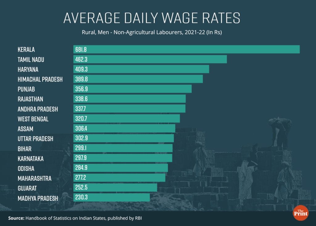 Uttar Pradesh, a state that doesn’t show up in the top 10 ranks list for FDI inflow despite being India’s most populous by a large margin, has a higher daily wage rate for rural non-agricultural work than either Maharashtra or Karnataka. Similarly, Rajasthan, a state with far less FDI inflow than the two leading states that make up half the inflow, has an even higher daily wage rate than Uttar Pradesh.